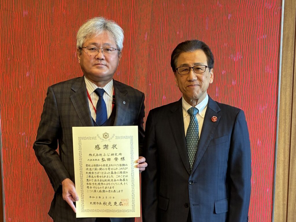 このたび、その取り組みに対し、札幌市長より感謝状を拝受いたしました。